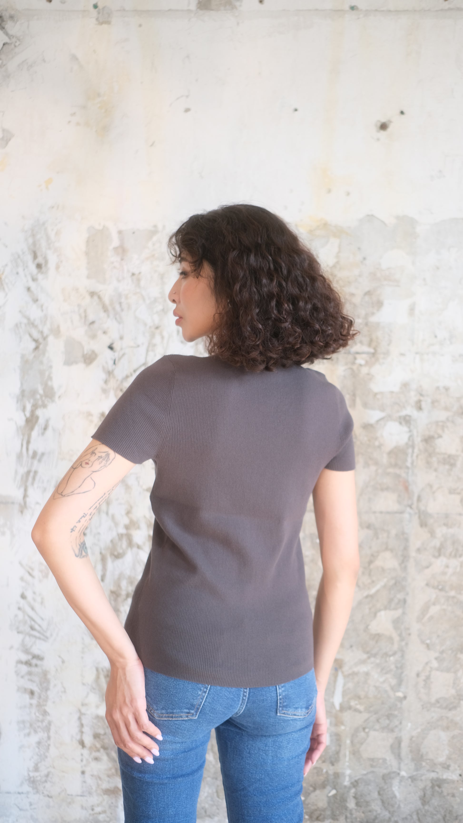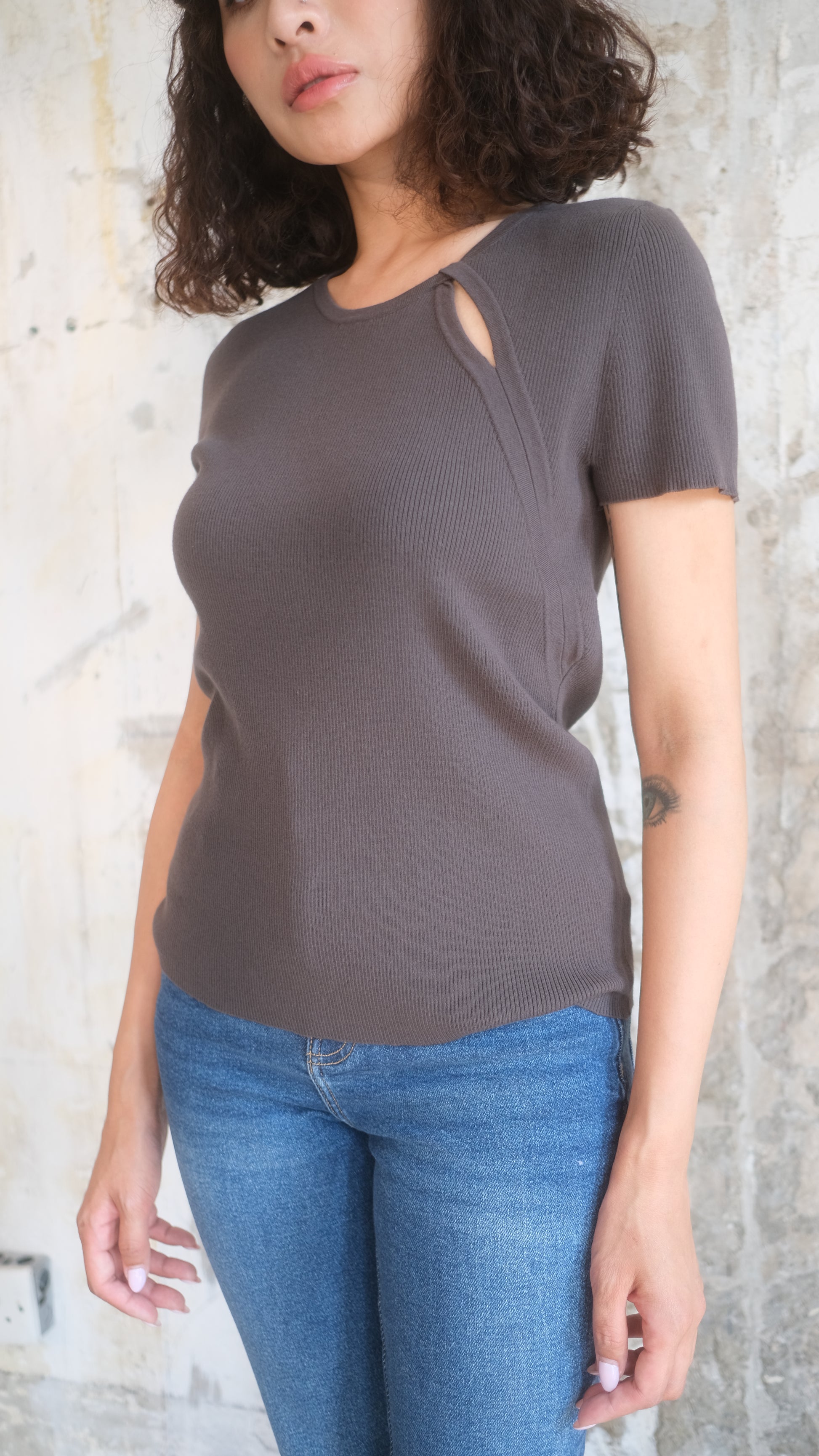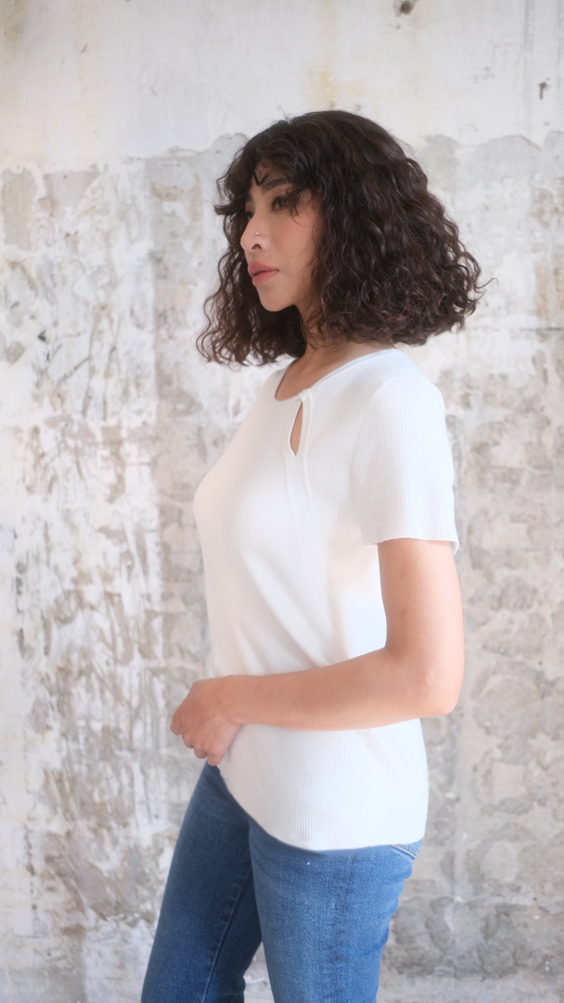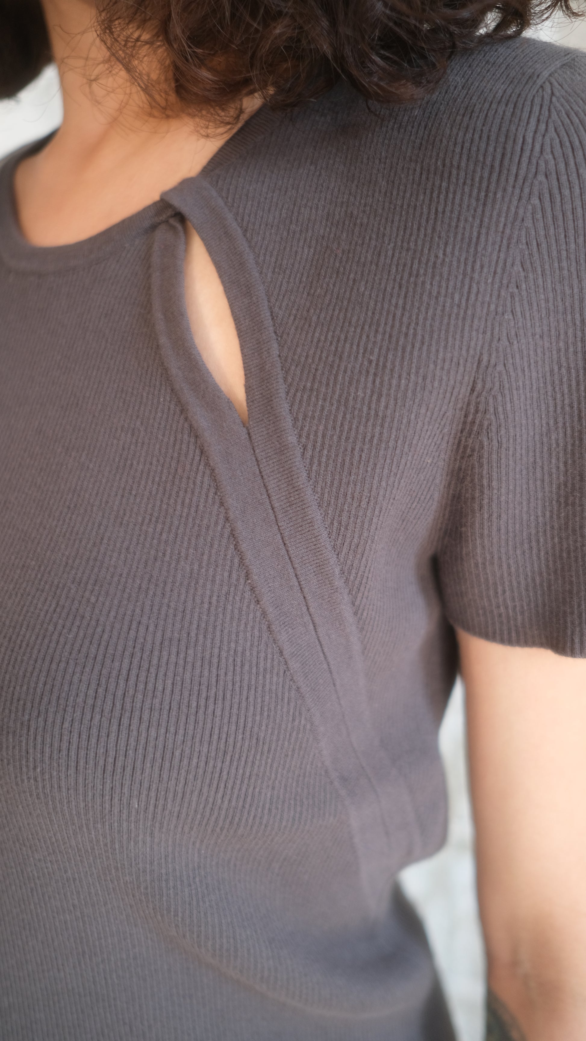 Our fitted, short-sleeve top is extremely soft and comfortable. It has a round neckline with a subtle cut-out detail, adding a stylish twist to the classic design. Simply pair it with blue jeans for a casual yet chic look.