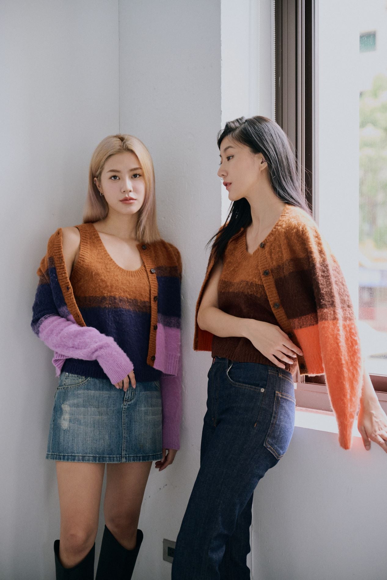 Bring this 70s vibe multicoloured top in your winter wardrobe. Featuring the mixture of vibrant colours, have fun mix and match with your favourite shirt or bright up your outfit by pairing with the matching cardigan to elevate your look.