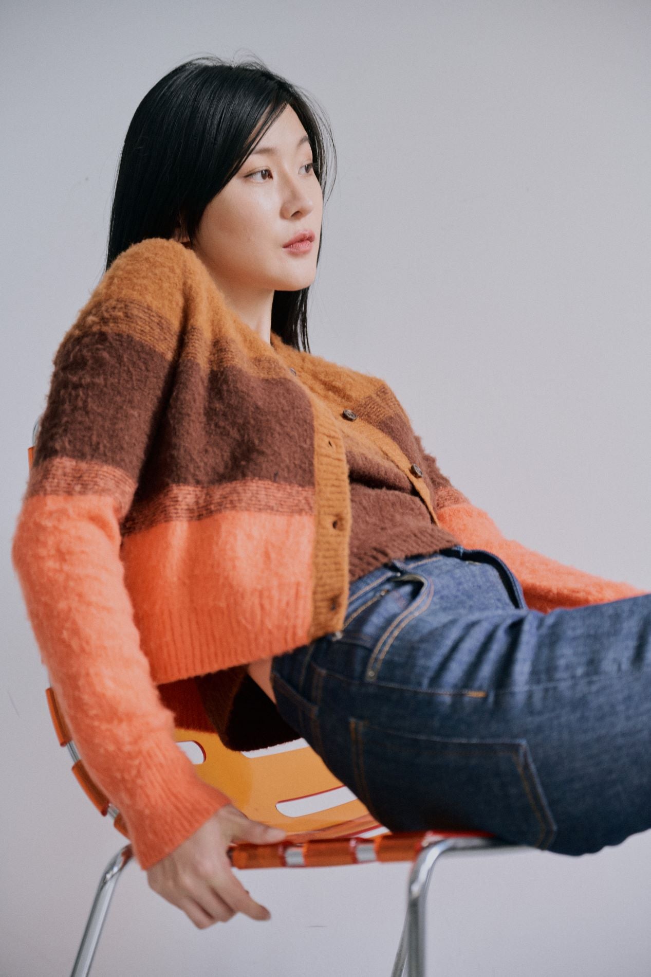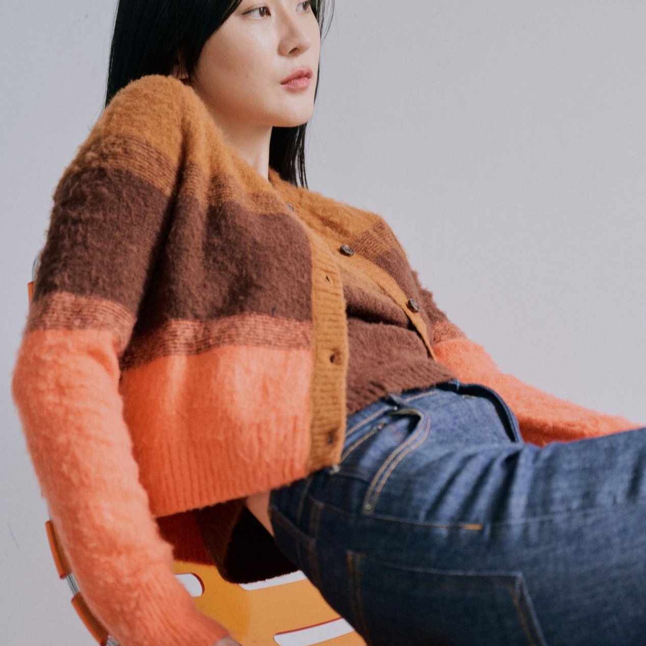 add a touch of 70s vibe to your winter wardrobe with our multicoloured cardigan. It would be a perfect layer to elevate any smart casual outfit, designed to pair with the matching inner piece for an effortless chic look.