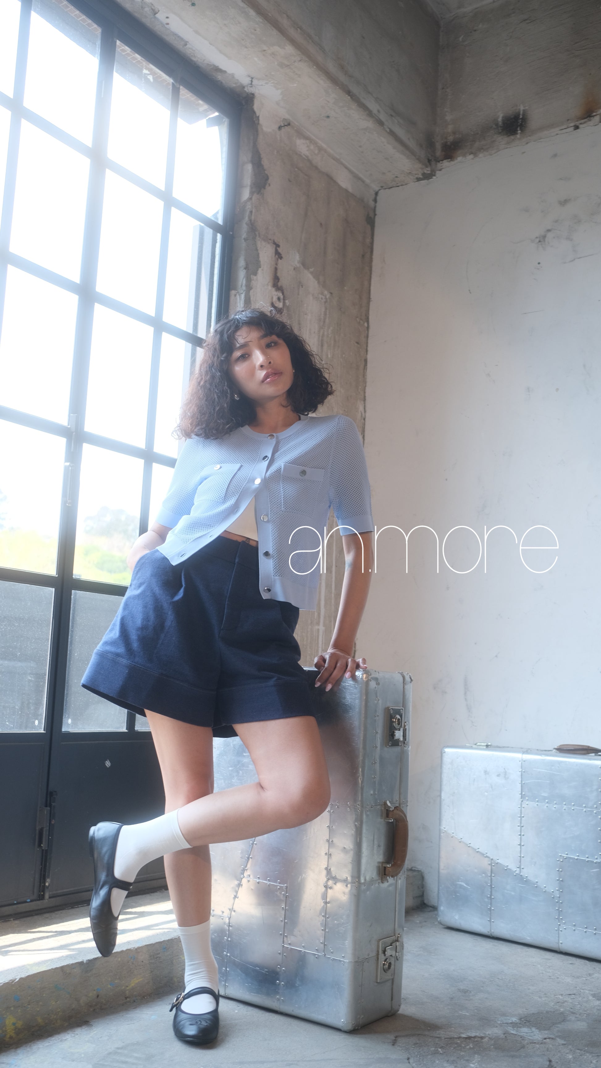 Our tailored navy shorts is a timeless piece for work or play. The fabric is solid and durable, with pleated detailing at the front gives the shorts an elevated look. It features a high waist and wide-leg silhouette that can instantly create a slimming effect on your legs. This is definitely a must-buy shorts in this summer.